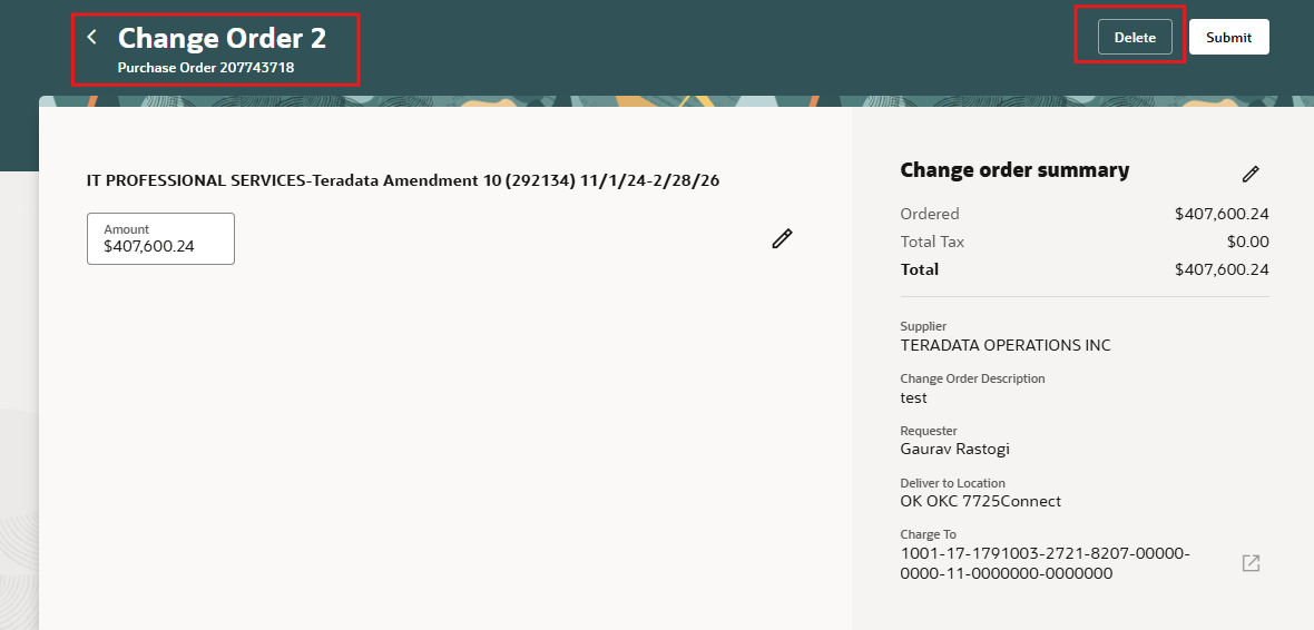 When you are in My Requisitions and you see the PO has a status "Change order pending submission" this means the change order was not submitted for approval.