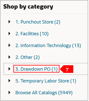 Wählen Sie die entsprechende Einkaufskategorie aus, abhängig von der Art der Dienstleistung, für die Sie die Drawdown-Bestellung erstellen. Wenn die Drawdown-Bestellung beispielsweise für den Landschaftsbau bestimmt ist, suchen Sie nach "FACILITY". Wählen Sie EINRICHTUNG aus. GEBÄUDE- UND GELÄNDEPFLEGE. MEHRERE KATEGORIEN.