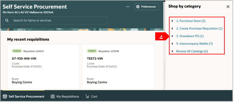 Nella home page di Oracle Cloud, seleziona Approvvigionamento.