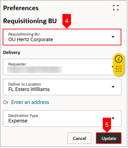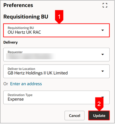 Selezionare la BU dal menu a discesa BU Richiesta.