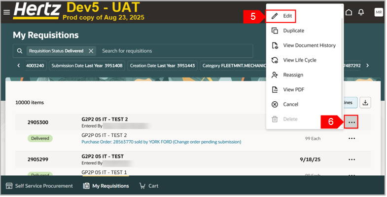 Al editar una orden de compra si decide no continuar o recibe un error y no está seguro de qué hacer.