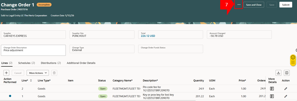 Le richieste di modifica PO che non vengono inviate appariranno negli ordini di gestione come invio di un ordine di modifica in sospeso / modifica incompleta.