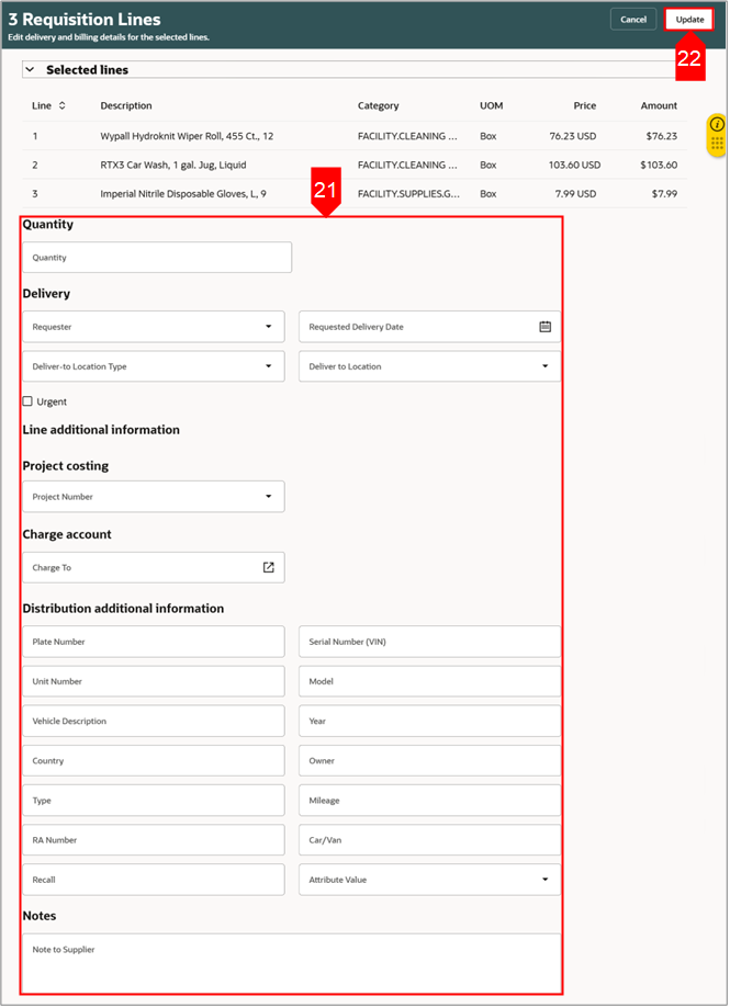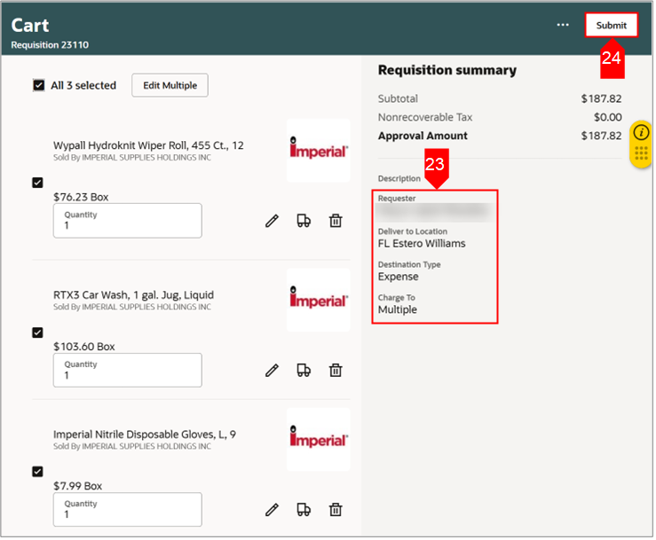 Überprüfen Sie die Anforderung, im rechten Bereich werden die Zeilen Anforderer und Standort angezeigt, wenn es mehrere Anforderer gibt, variieren die Beschreibungen je nach Zeile.