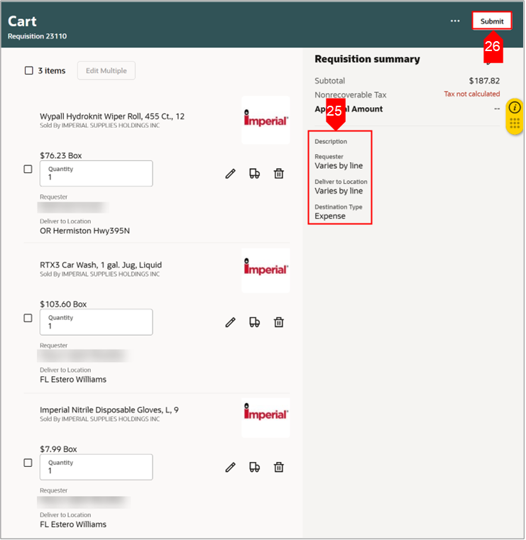 Standortadresse für Anforderer bestätigen: Wenn nicht, suchen Sie nach Ihrer Adresse oder fügen Sie eine einmalige Adresse hinzu.