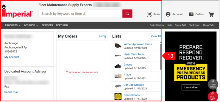 Wählen Sie das entsprechende Konto aus, z.B. Imperial Punchout Store.
