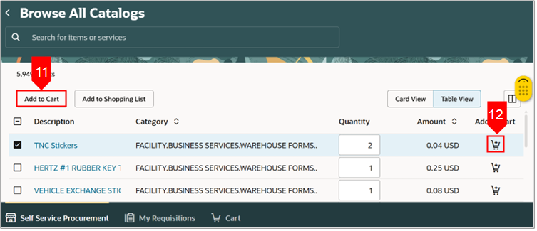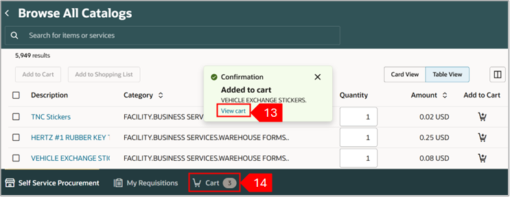 Wählen Sie Warenkorb anzeigen aus , um Anforderungen anzuzeigen.