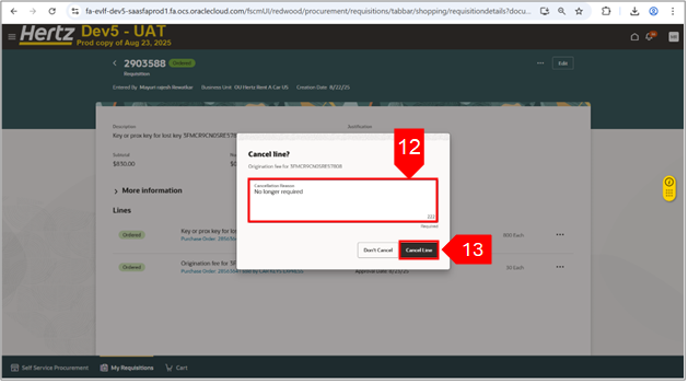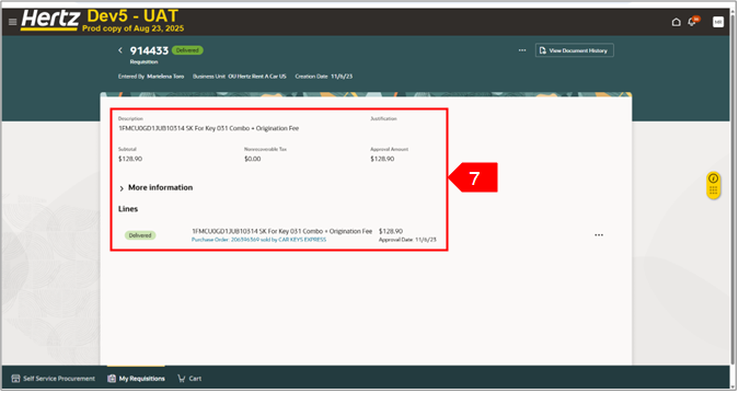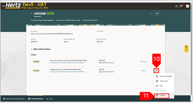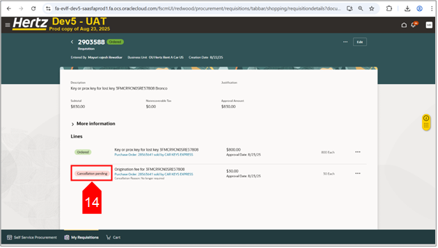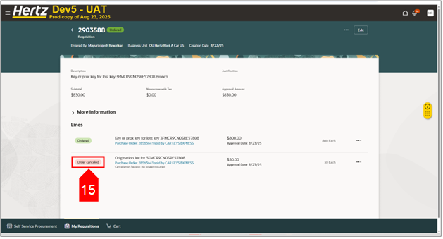 Note: Do not cancel the requisition lines when there is not a separate line for the original fee.