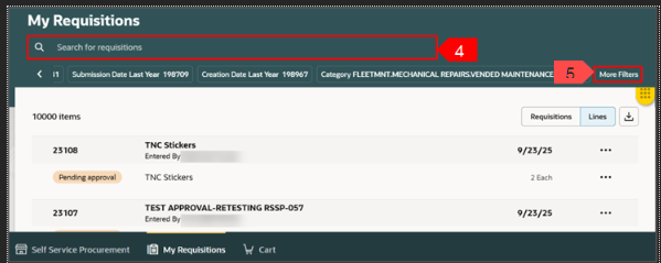 Note: You can use filters such as Business Unit, Supplier, requisition number within double quotation etc.