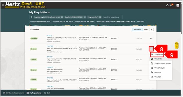 Select Ellipsis icon (three dots) against the chosen requisition.