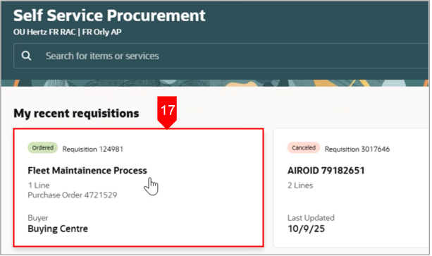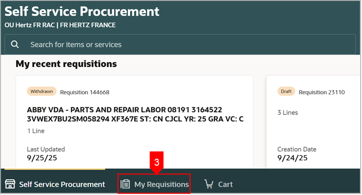 Inizialmente, la Requisizione è in fase di bozza. La richiesta passerà quindi attraverso il ciclo di approvazione, se necessario. È possibile visualizzare lo stato in Le mie richieste recenti della pagina Approvvigionamento self-service. Selezionare la scheda per visualizzare lo stato dettagliato.