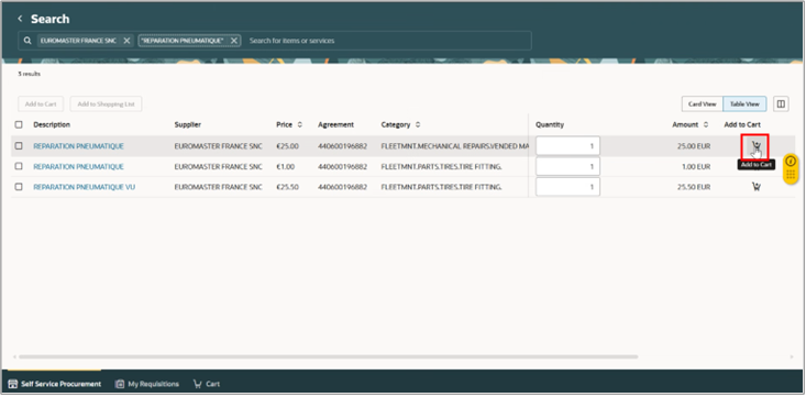 Eseguire la ricerca utilizzando le parole chiave nella barra di ricerca della pagina Acquisti self-service.