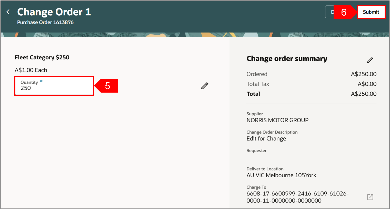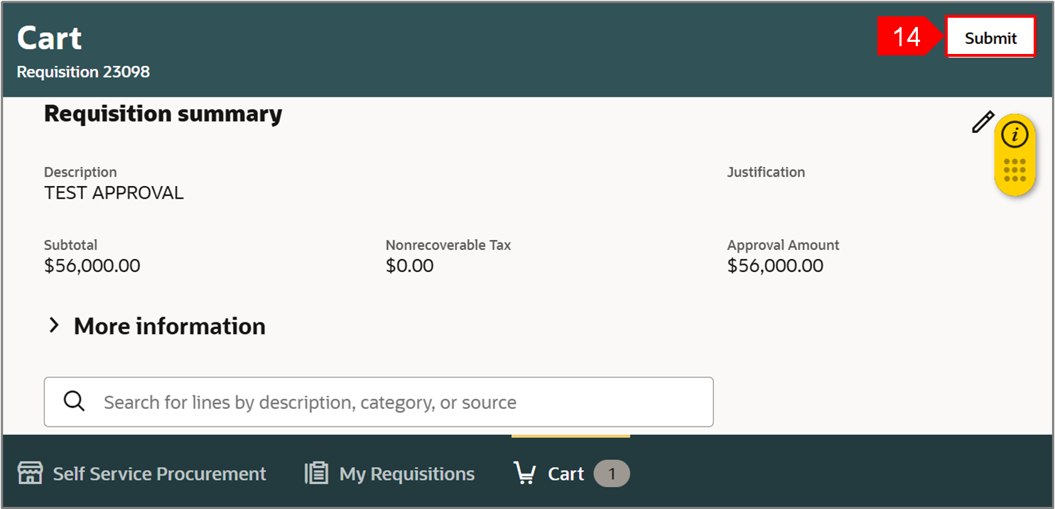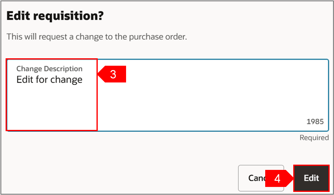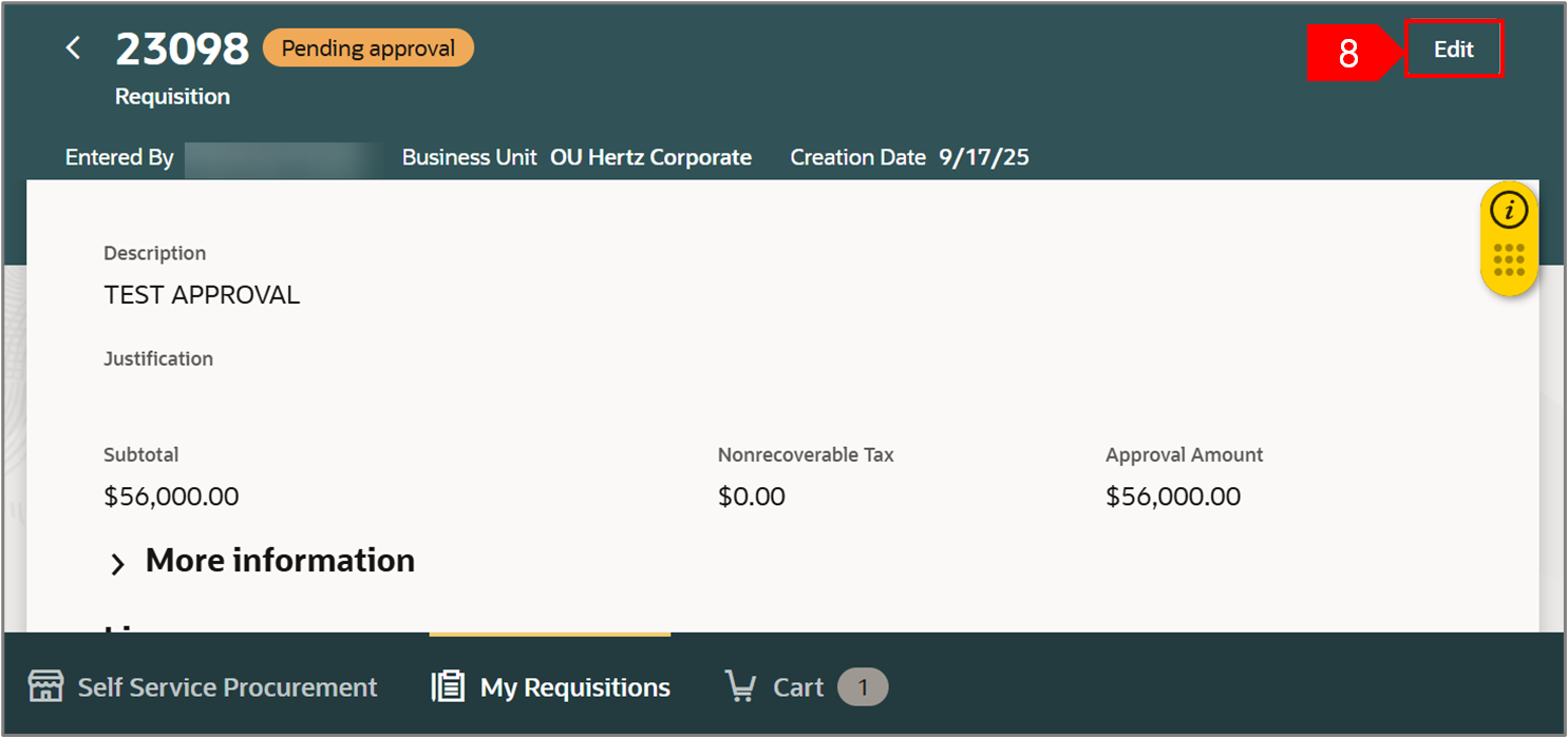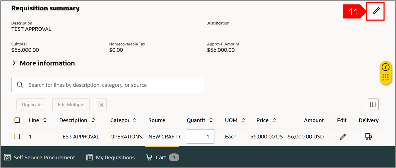 Select Edit icon (pencil) of Requisition summary to make changes at header level.