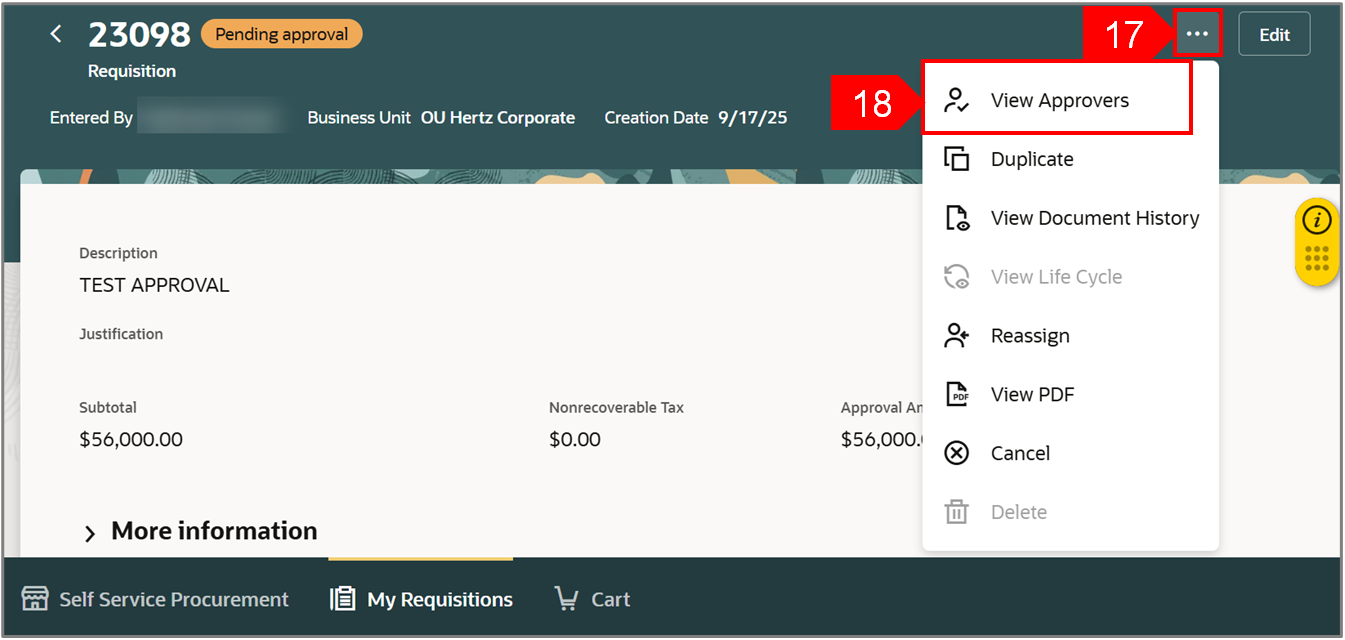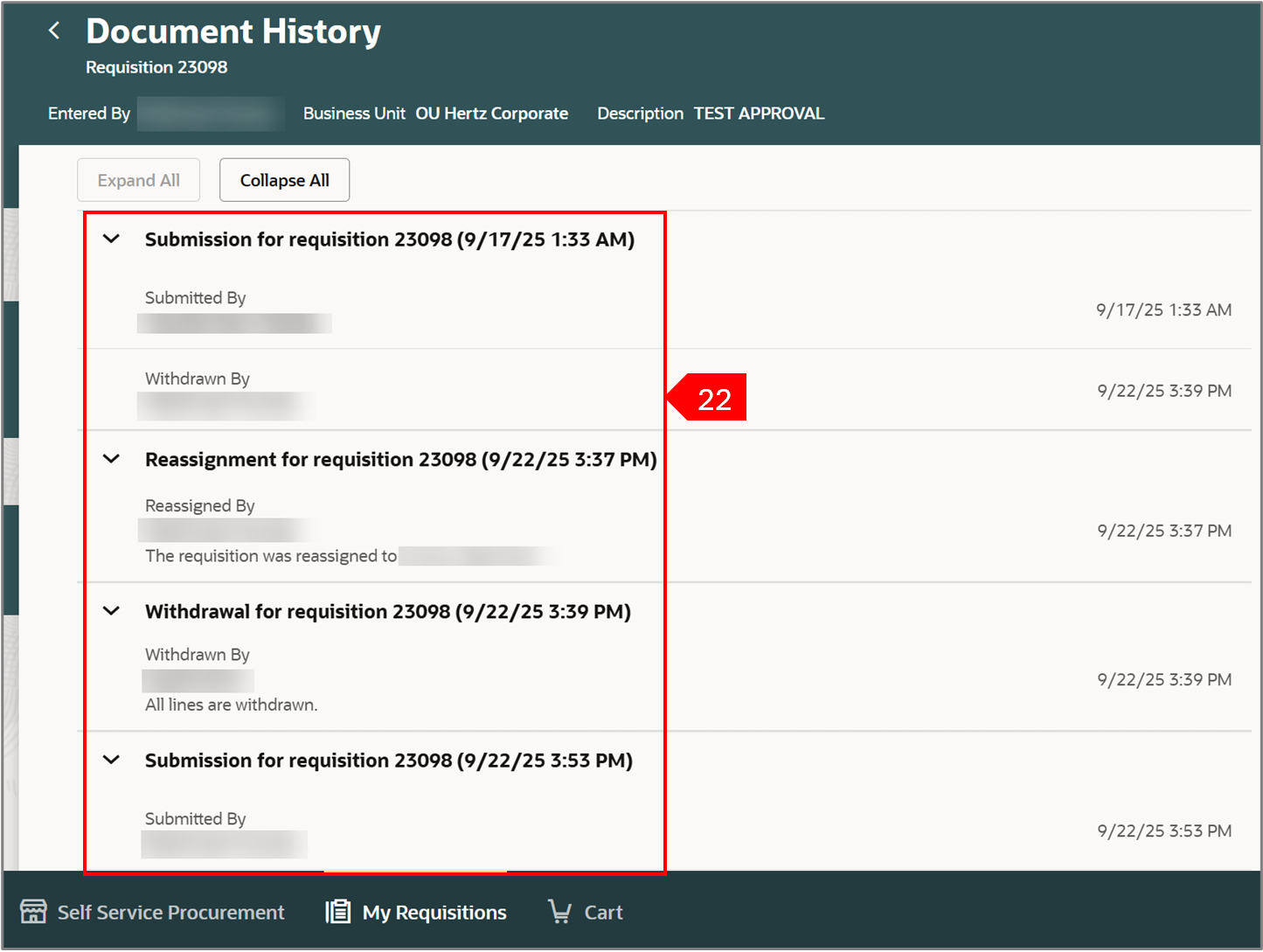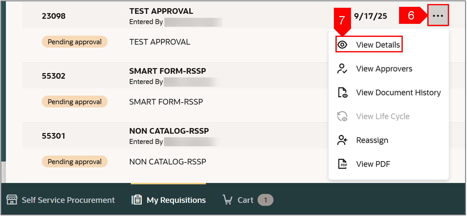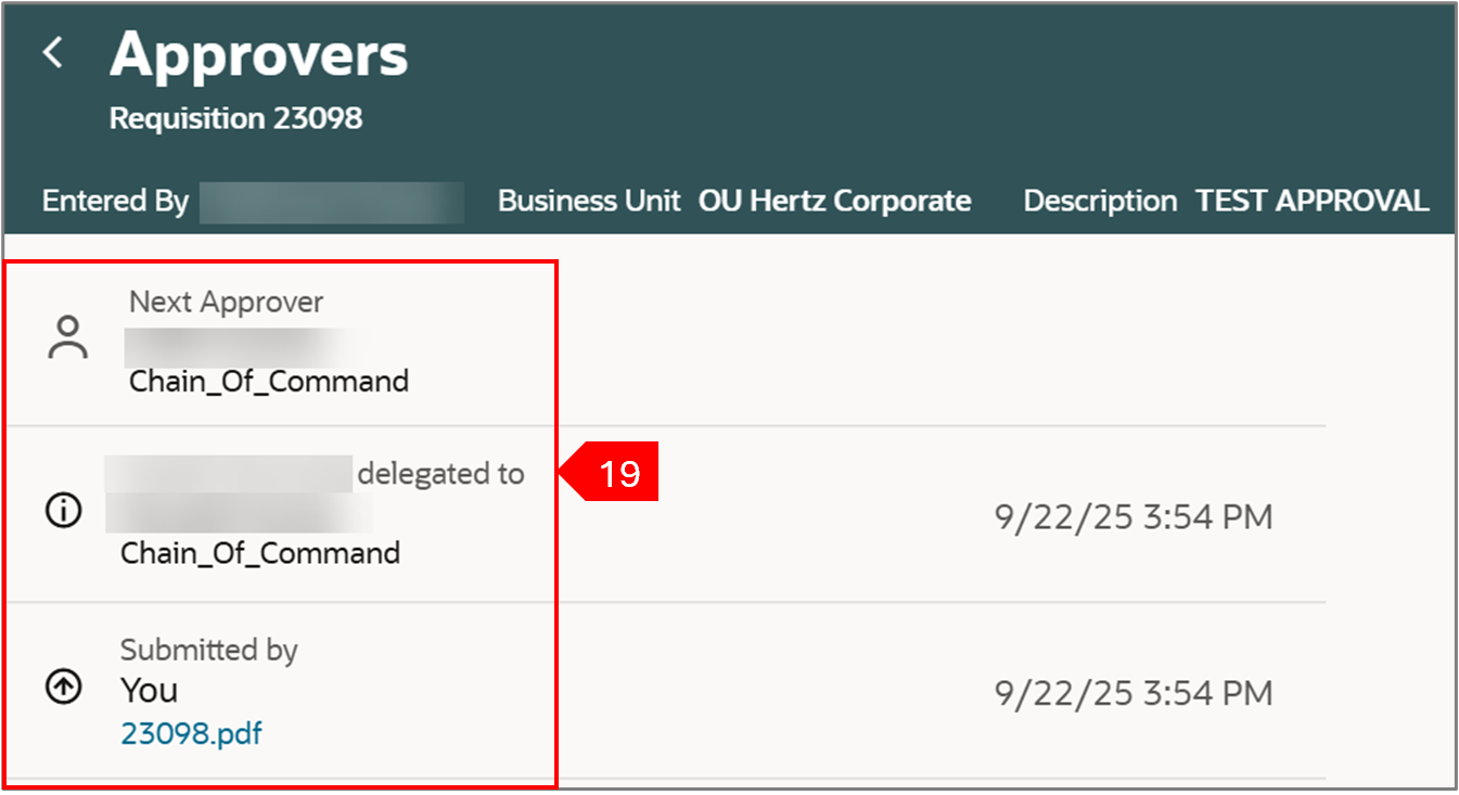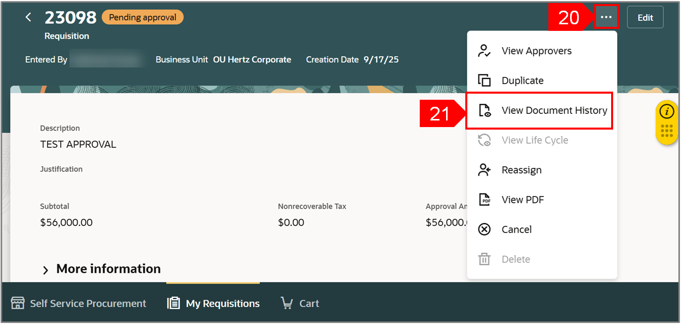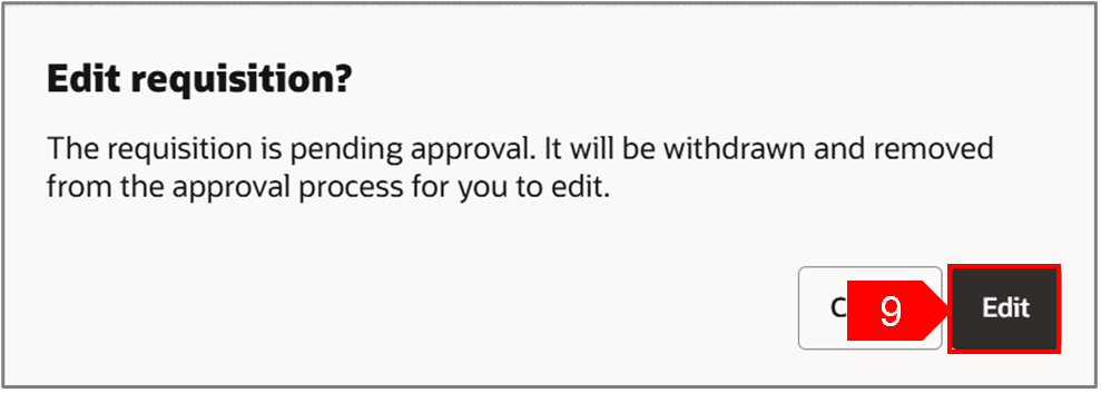 Note: The requisition is removed from the approval process, or from ‘Approved’ status.