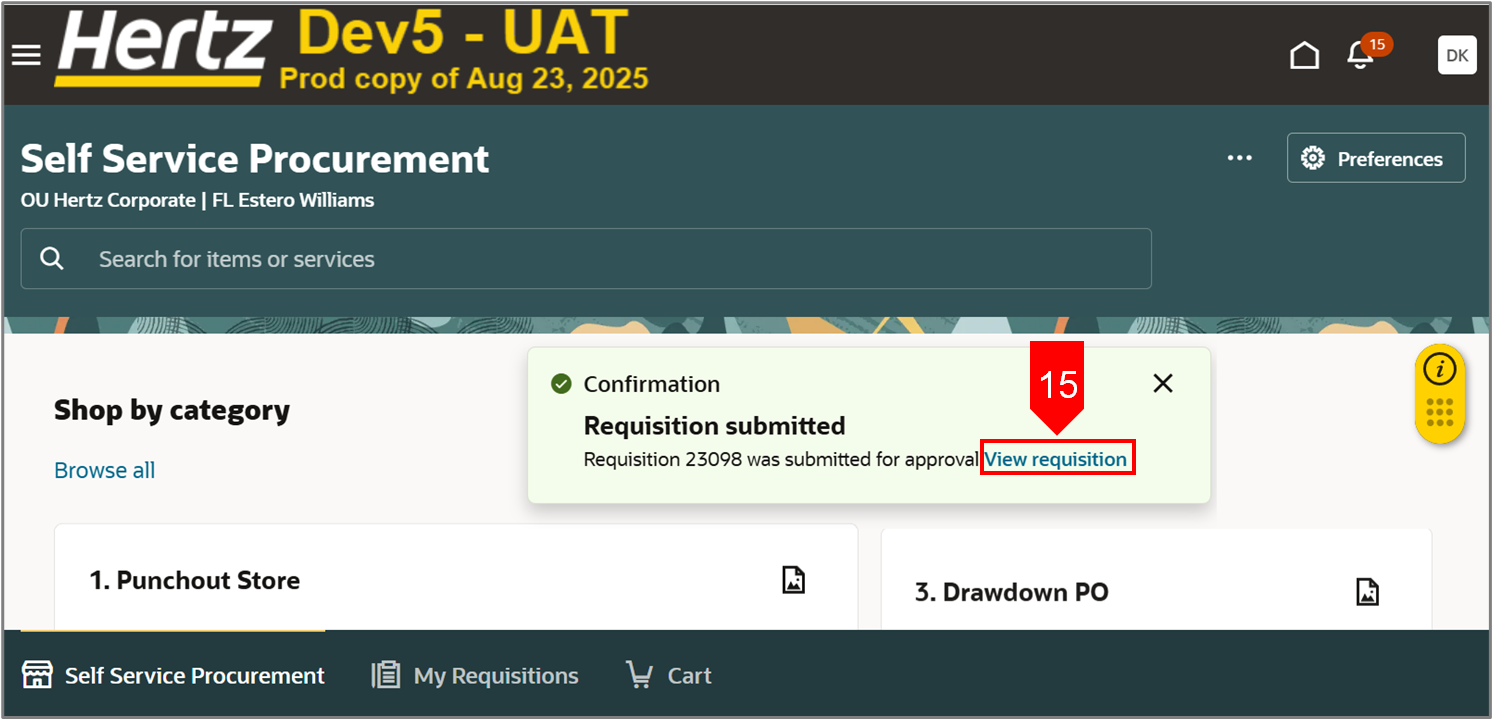 You can select View Requisition to view the requisition when a confirmation message appears.
