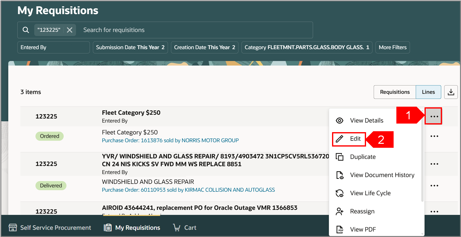 Edit a Requisition with a PO. Search for the requisition or PO in the search bar under My Requisitions.