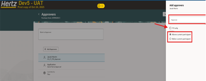 El nombre del aprobador debe estar en alta luz, selecciona añadir aprobador