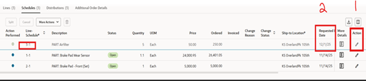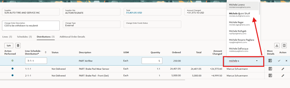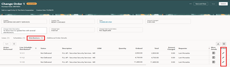 Pour mettre à jour le nom du demandeur, la date de livraison demandée ou les comptes de charge, utilisez les onglets du calendrier ou de la distribution.