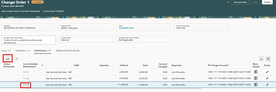 Après avoir mis à jour la nouvelle ligne de distribution #4, revenez à la #3 pour réduire la quantité. Sélectionnez Sauvegarder.